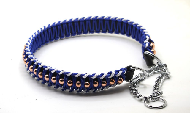Collier martingale chainette, sur base biothane, avec tressage et perles