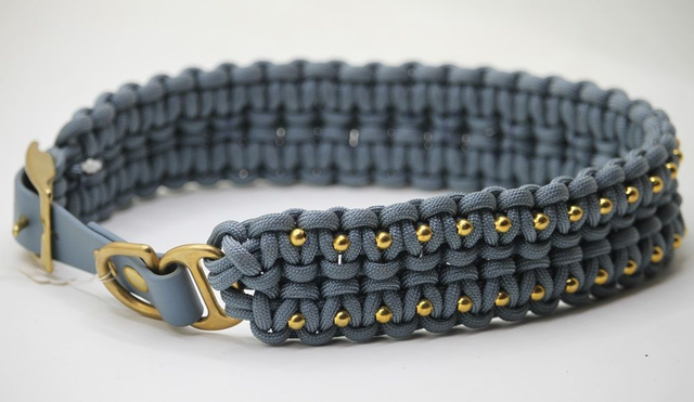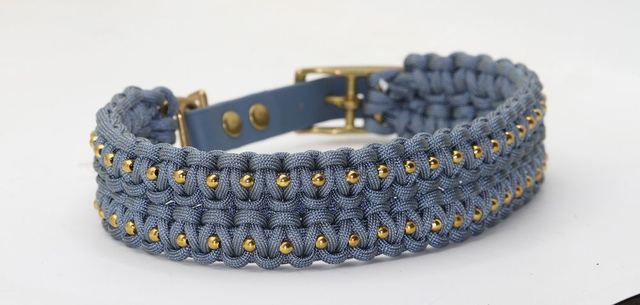 Collier tressage paracorde et perles dorées, fermeture à boucle