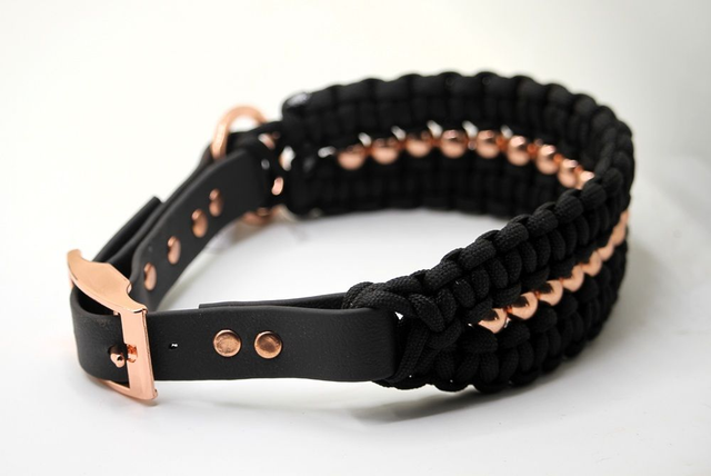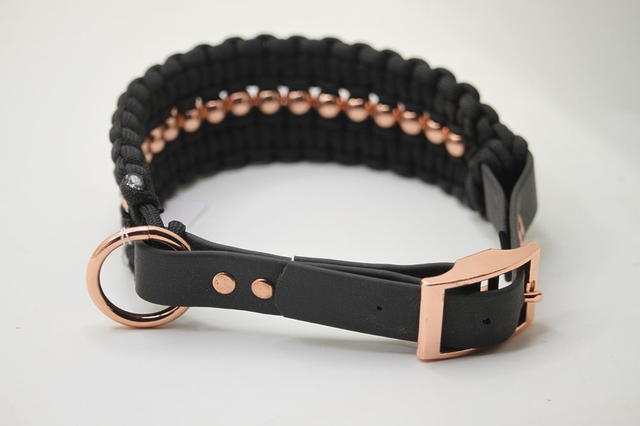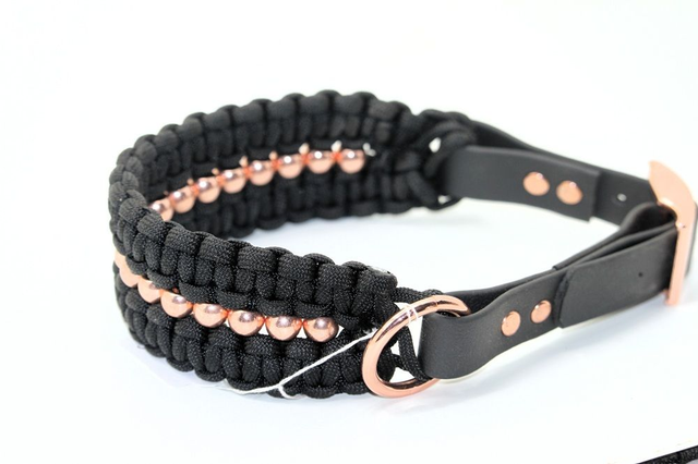 Collier tressage paracorde, avec fermeture réglable, perles et bouclerie or rose