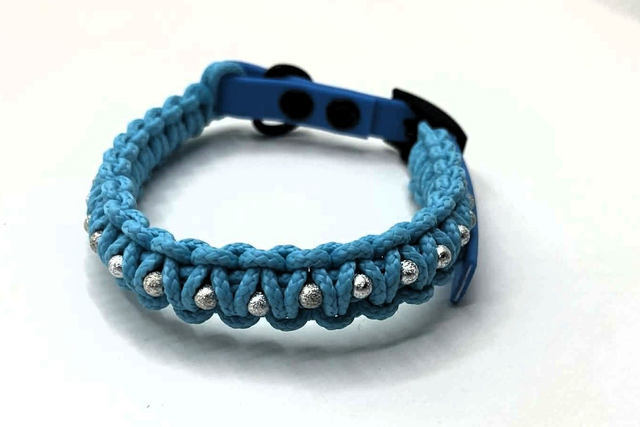 Collier tressage bleu turquoise et perles, fermeture à boucle sur biothane