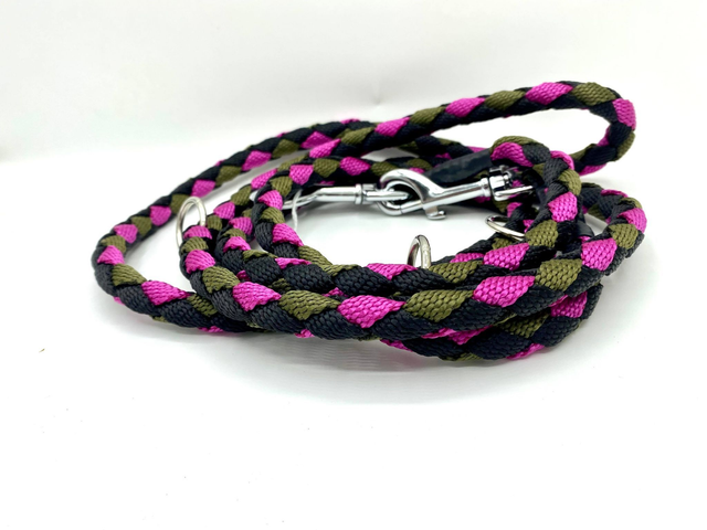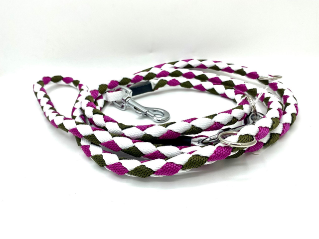 Laisse 3 points Framboise/Blanc