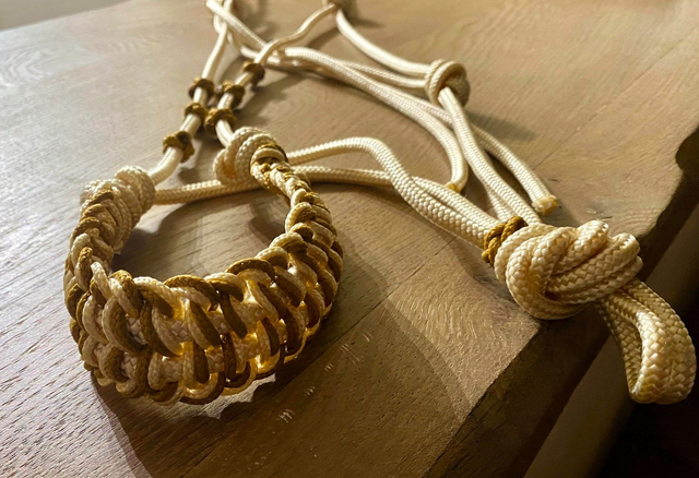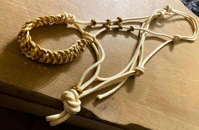 Licol éthologique or et beige, avec tressage muserolle large