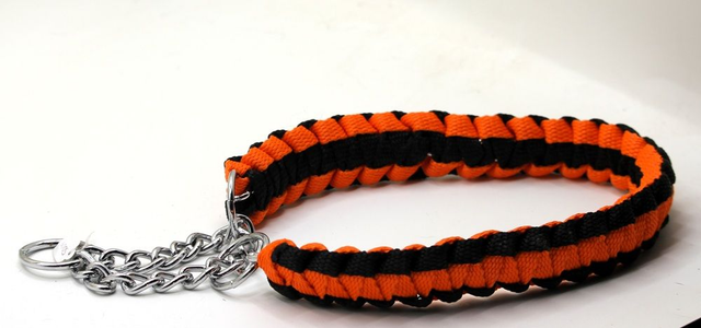 Collier martingale chainette, tressage cobra sur gourmette métallique